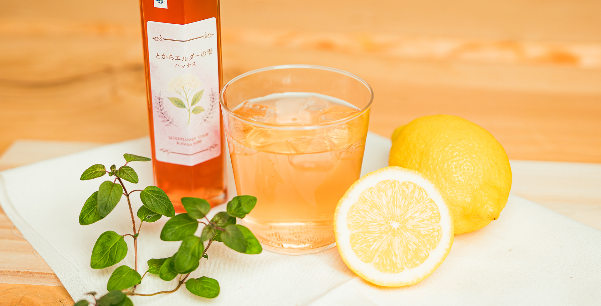 北海道の花、バラの原種のひとつであるハマナスとのマリアージュ。エルダーの清涼感に、ローズの官能的な香りとルビー色が重なります。温かい紅茶に垂らせば、華やかな香りで心まで解きほぐします。